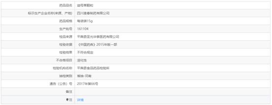事實(shí)上,這并非四川逢春制藥有限公司首次出現(xiàn)藥品質(zhì)量缺陷。中國經(jīng)濟(jì)網(wǎng)記者查詢發(fā)現(xiàn),此前該公司生產(chǎn)的益母草顆粒就曾被通報(bào)不合格。