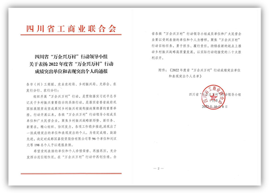 會(huì)上,表彰了2022年度“萬企興萬村”行動(dòng)成績突出單位和表現(xiàn)突出個(gè)人。其中,全國人大代表、成都涼山商會(huì)會(huì)長、好醫(yī)生集團(tuán)董事長耿福能受到四川省“萬企興萬村”行動(dòng)領(lǐng)導(dǎo)小組通報(bào)表揚(yáng),獲評(píng)2022年度四川省“萬企興萬村”行動(dòng)表現(xiàn)突出個(gè)人榮譽(yù)稱號(hào)。成都涼山商會(huì)常務(wù)副秘書長、好醫(yī)生集團(tuán)鄉(xiāng)村振興工作組常務(wù)副組長謝芳福同獲表彰。