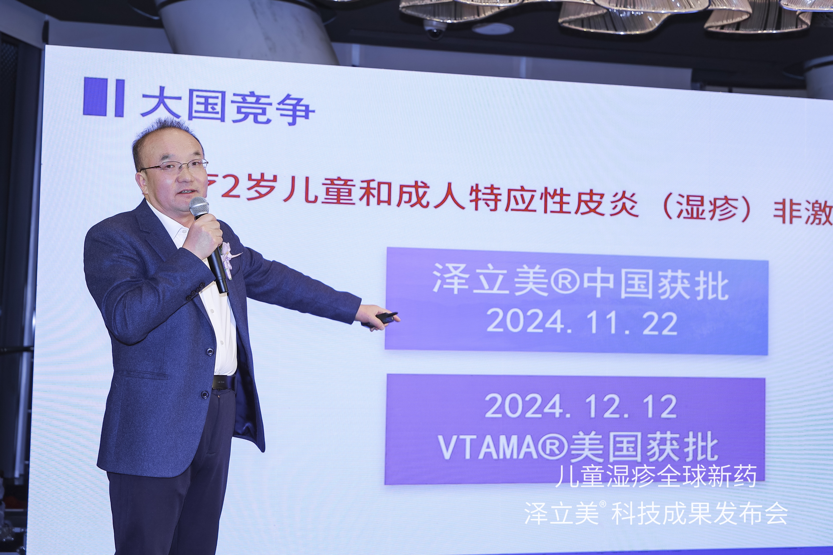 2024年12月28日,兒童濕疹全球新藥澤立美科技成果發(fā)布會(huì)在上海舉行。圖為澤德曼醫(yī)藥科技有限公司董事長(zhǎng)兼首席執(zhí)行官陳庚輝博士進(jìn)行主題報(bào)告。