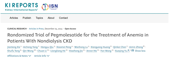 近日,國(guó)際腎臟病領(lǐng)域著名期刊Kidney International Reports(IF:5.7/Q1)在線發(fā)表了由廣東省人民醫(yī)院余學(xué)清教授牽頭的培莫沙肽注射液(商品名:圣羅萊)在非透析腎性貧血患者中開(kāi)展的Ⅲ期臨床研究數(shù)據(jù)。