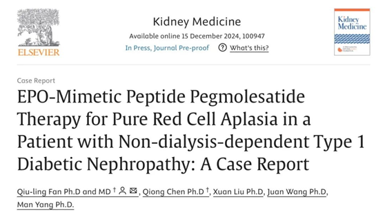 近日,美國(guó)腎臟基金會(huì)(NKF)官方期刊《腎臟醫(yī)學(xué)》(Kidney Medicine)發(fā)表了由上海交通大學(xué)醫(yī)學(xué)院附屬第一人民醫(yī)院腎內(nèi)科范秋靈教授主導(dǎo)研究的一篇有關(guān)促紅細(xì)胞生成素(EPO)模擬肽——培莫沙肽(商品名:圣羅萊)的病例報(bào)告。該報(bào)告首次顯示了培莫沙肽能夠有效治療EPO誘導(dǎo)的純紅細(xì)胞再生障礙性貧血(PRCA)患者,且安全性良好,為這種罕見(jiàn)但嚴(yán)重的并發(fā)癥提供了一種頗具前景的創(chuàng)新解決方案。