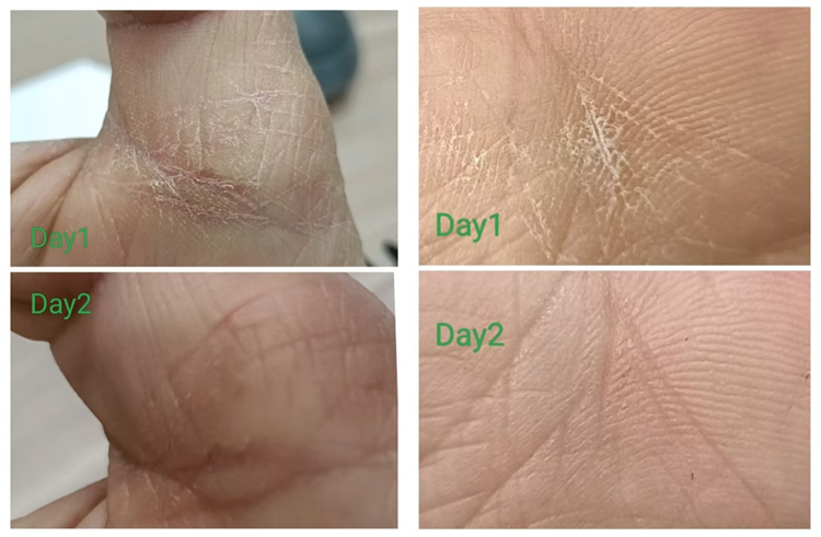 2天后:皸裂愈合,皮膚紋理恢復(fù)正常。