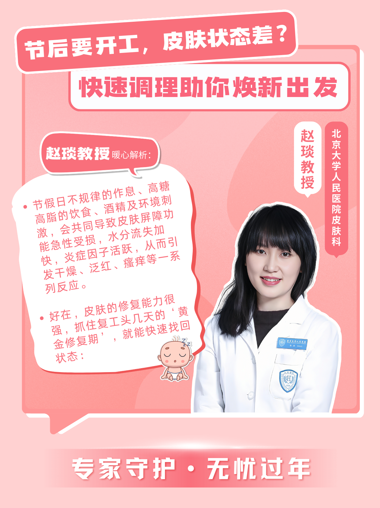 “節(jié)假日勞累、作息紊亂確實容易誘發(fā)或加重特應(yīng)性皮炎癥狀,這與免疫狀態(tài)波動及皮膚屏障功能暫時下降有關(guān)。別著急,年初一的‘面子工程’可以快速補(bǔ)救,記住三個關(guān)鍵步驟: