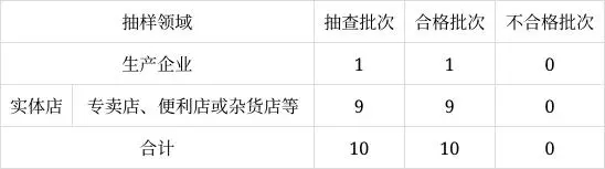 本次任務共10批次,實際抽到10批次,在生產(chǎn)企業(yè)和實體店中抽取,具體情況見表1。
