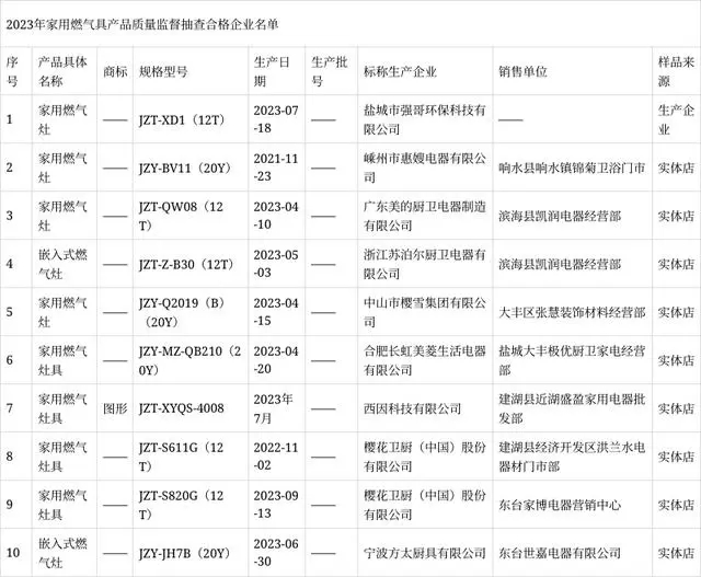 2023年度鹽城市市場監(jiān)督管理局委托南京市產(chǎn)品質(zhì)量監(jiān)督檢驗院(南京市質(zhì)量發(fā)展與先進技術應用研究院)組織實施家用燃氣具產(chǎn)品市級監(jiān)督抽查。本次抽查計劃10批次,抽到10批次,經(jīng)檢驗合格10批次。