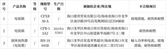 2023年8月-2023年9月,??谑惺袌?chǎng)監(jiān)督管理局委托華測(cè)檢測(cè)認(rèn)證集團(tuán)股份有限公司對(duì)全市流通領(lǐng)域(線上)的電飯煲產(chǎn)品進(jìn)行了市級(jí)監(jiān)督抽查。本次共抽查3批次產(chǎn)品,3批次產(chǎn)品不合格,合格率為0%。