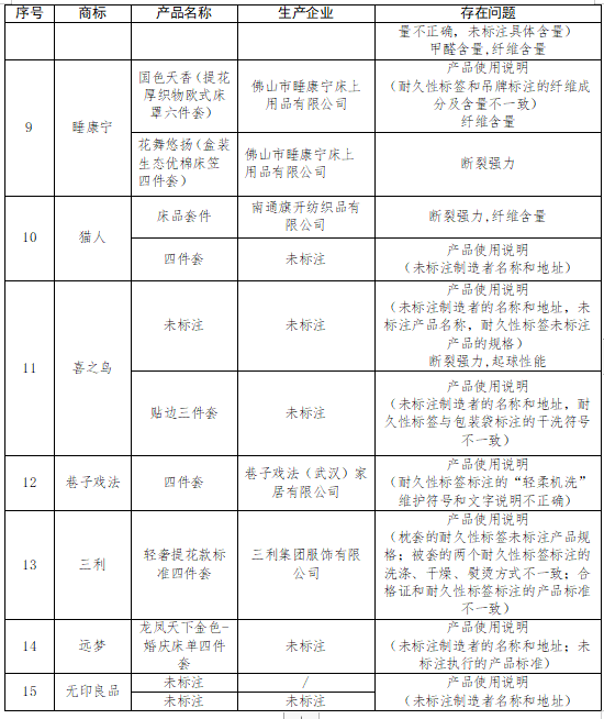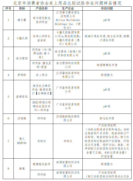 北京市消協(xié)發(fā)布:15個(gè)床上用品品牌樣品不達(dá)標(biāo)
