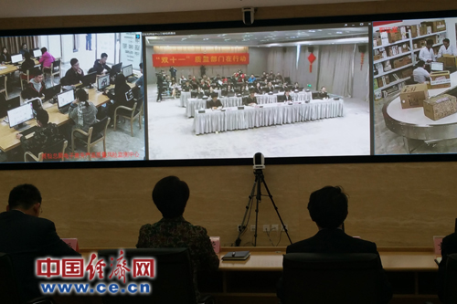 國家質(zhì)檢總局與設(shè)在杭州的質(zhì)檢總局電子商務(wù)產(chǎn)品質(zhì)量風(fēng)險監(jiān)測中心(杭州)進(jìn)行了視頻連線,全過程監(jiān)管。中國經(jīng)濟(jì)網(wǎng)記者蘇蘭/攝