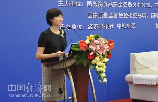 6月11日至17日被確定為今年的全國(guó)食品安全宣傳周。作為2012年全國(guó)食品安全宣傳周最重要活動(dòng)之一,全國(guó)食品安全宣傳周啟動(dòng)儀式暨第四屆中國(guó)食品安全論壇6月11日在北京舉行。論壇由國(guó)務(wù)院食品安全委員會(huì)辦公室、工業(yè)和信息化部、農(nóng)業(yè)部、商務(wù)部、衛(wèi)生部、國(guó)家工商總局、國(guó)家質(zhì)檢總局、國(guó)家糧食局、國(guó)家食品藥品監(jiān)管局、中國(guó)科協(xié)共同主辦,經(jīng)濟(jì)日?qǐng)?bào)社、中糧集團(tuán)承辦,中國(guó)經(jīng)濟(jì)網(wǎng)執(zhí)行承辦。圖為中央電視臺(tái)節(jié)目主持人敬一丹 裴小閣 攝
