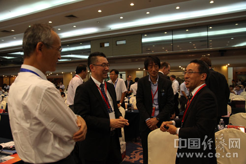 由中國道路交通安全協(xié)會(huì)、中國汽車技術(shù)研究中心和中國經(jīng)濟(jì)網(wǎng)共同主辦的“2013中國道路交通安全論壇”于8月29日在北京首都大酒店舉行。圖為日產(chǎn)汽車株式會(huì)社企劃·先行技術(shù)開發(fā)本部部長高橋信彥(右)與參會(huì)嘉賓進(jìn)行交流。中國經(jīng)濟(jì)網(wǎng) 裴小閣 攝影