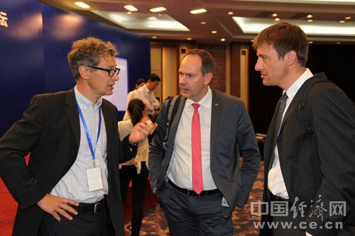 由中國道路交通安全協(xié)會、中國汽車技術研究中心和中國經(jīng)濟網(wǎng)共同主辦的“2013中國道路交通安全論壇”于8月30日在北京首都大酒店舉行。圖為歐洲新車安全評鑒協(xié)會主席安德魯斯克與參會嘉賓進行交流。中國經(jīng)濟網(wǎng) 郝紅波/攝