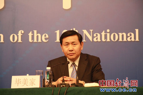 3月11日(星期一)下午3時(shí),農(nóng)業(yè)部副部長(zhǎng)陳曉華,農(nóng)業(yè)部總經(jīng)濟(jì)師、辦公廳主任、新聞發(fā)言人畢美家將就“增強(qiáng)農(nóng)村發(fā)展活力,穩(wěn)定發(fā)展糧食和農(nóng)業(yè)生產(chǎn)”的相關(guān)問(wèn)題回答中外記者的提問(wèn)。圖為農(nóng)業(yè)部總經(jīng)濟(jì)師、辦公廳主任、新聞發(fā)言人畢美家答記者問(wèn)。(中國(guó)經(jīng)濟(jì)網(wǎng)朱津津 攝影)