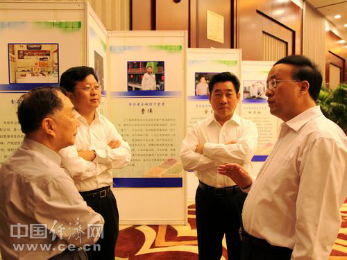食品藥品監(jiān)管總局副局長劉佩智、滕佳材、蘭州市市長袁占亭、中國工程院院士陳君石進(jìn)行交流