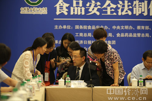 2013年全國食品安全宣傳周啟動儀式暨第五屆中國食品安全論壇6月17日在北京舉辦,今年主題為“社會共治 同心攜手維護食品安全”。圖為北京大學法學院副院長沈巋接受采訪。中國經(jīng)濟網(wǎng) 王耀峰/攝