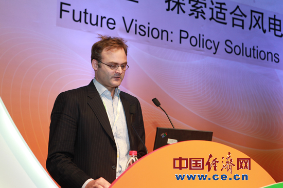 所謂的滲透率和普及率,在全國來看確實很低,但我們看一下內(nèi)蒙古等地區(qū),在國際標(biāo)準(zhǔn)來看它的滲透率也是很高的,去年內(nèi)蒙古的風(fēng)電滲透率可以與德國相比,風(fēng)能占總裝機容量的16%。在中國的管理問題更加突出,因為理論上講這樣地方的風(fēng)力資源更有優(yōu)勢,在發(fā)展風(fēng)電的時候要更好地統(tǒng)籌考慮。在內(nèi)蒙古火電站和風(fēng)場怎樣進(jìn)行統(tǒng)籌考慮,像德國這樣更好的并網(wǎng)。因為德國在并網(wǎng)和利用風(fēng)能方面有更多的經(jīng)驗,德國的一些工作已經(jīng)走在了中國前面,有些事情在德國已經(jīng)順理成章,在中國還沒有這樣。我們發(fā)現(xiàn)鑒于中國已經(jīng)進(jìn)行的開發(fā)活動,像內(nèi)蒙古這樣風(fēng)力資源充沛的地方,在近期可能會成為世界上風(fēng)能普及率最高的地方之一,成為全世界的佼佼者。在內(nèi)蒙古這樣的地方,占中國總體風(fēng)力市場的35%左右。在這樣的地區(qū)市場上,風(fēng)力資源非常充沛,與風(fēng)能相抗的只能是煤電。因此,我們面臨整合的問題。也就是怎樣將風(fēng)電和煤電進(jìn)行整合。一般來說煤電占500兆瓦,風(fēng)電也需要有類似的裝置,必須保證24小時都能夠利用風(fēng)能,這樣就可以保證風(fēng)電的供應(yīng)。如果有400兆瓦的風(fēng)機容量得到安裝,并進(jìn)行有效運作,確實可以解決相關(guān)問題。